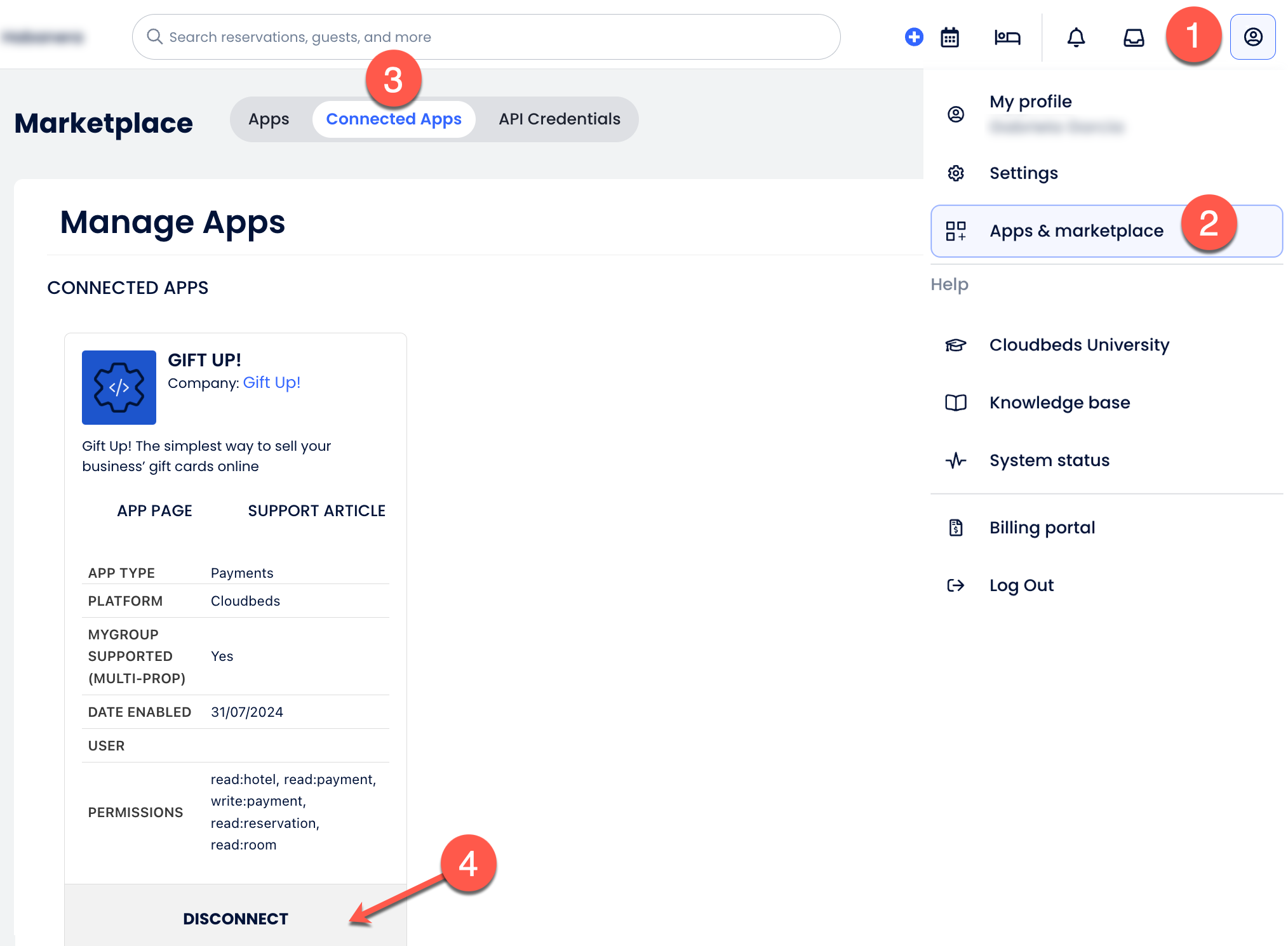 Cloudbeds PMS’den bir uygulamanın bağlantısı nasıl kesilir veya silinir