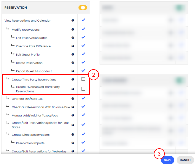 - Rezervasyonlar altında, Fazla Rezervasyonlu Üçüncü Taraf Rezervasyonları Oluştur ve (isteğe bağlı olarak) Üçüncü Taraf Rezervasyonları Oluştur izinlerini kapat.