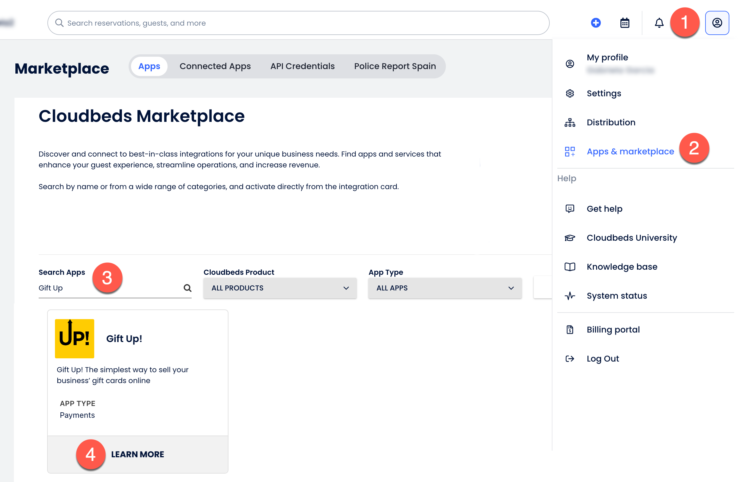 Bu makale, uygulamanı Cloudbeds PMS ile entegre etmen için gereken adımları aşağıdaki GIF'te gösterildiği şekilde anlatacak.
