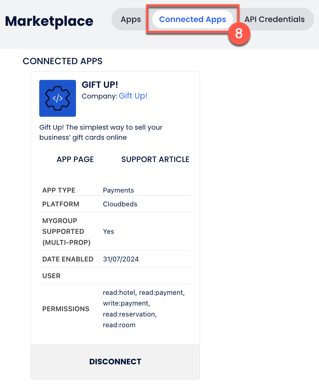 - Uygulama artık bağlı. Bağlı tüm uygulamaları ve bağlantı detaylarını Marketplace sayfasında kontrol et: