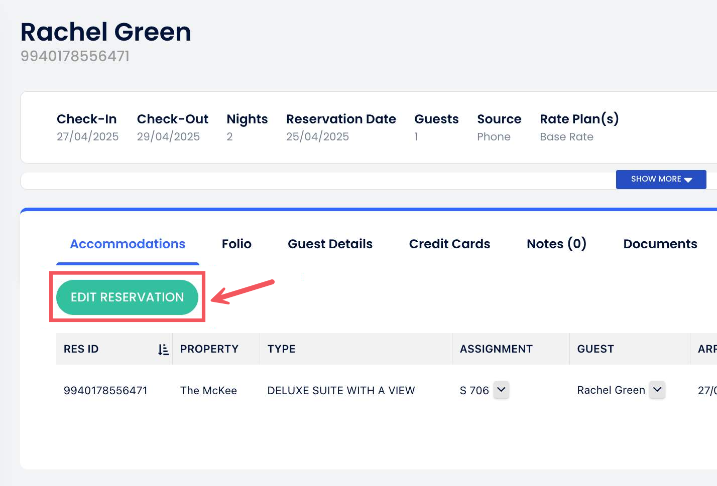 1. Misafirin ilgili Rezervasyon Sayfasına git.