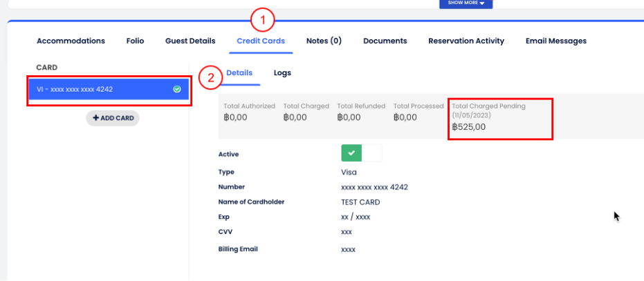 - Rezervasyona git ve Kredi Kartları sekmesine geç.