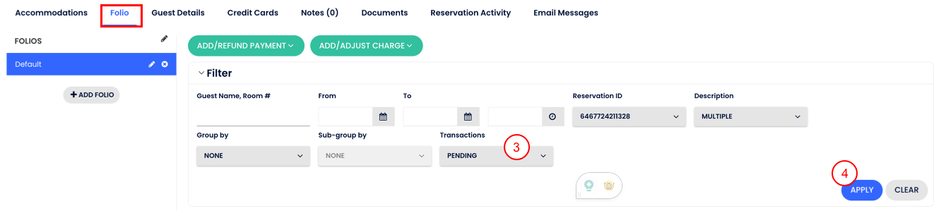 - Folyo üzerindeki bekleyen ücreti görmek için, işlemleri Beklemede olarak filtrele.