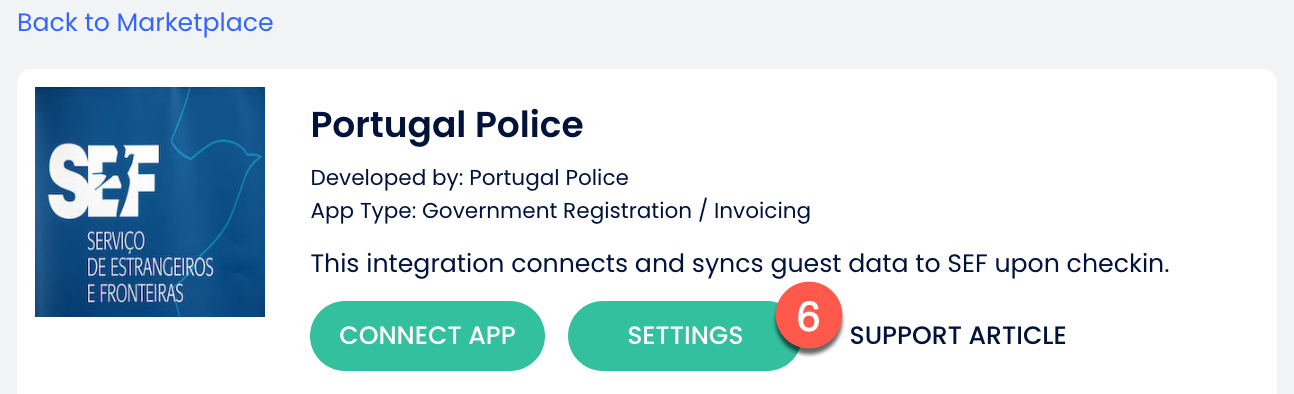 - Bu işlem seni Marketplace Bağlı Uygulamalar Sayfasına geri götürecek. Portekiz Polisi Rapor entegrasyonuna eriş ve Uygulama Sayfası seçeneğine tıkla.