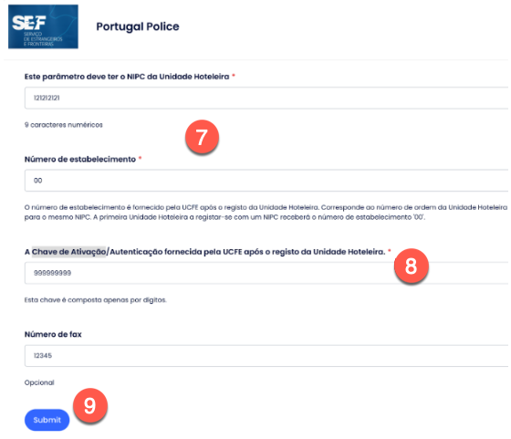 - NIPC da Unidade Hoteleira alanına, İşletme Numarasını gir.