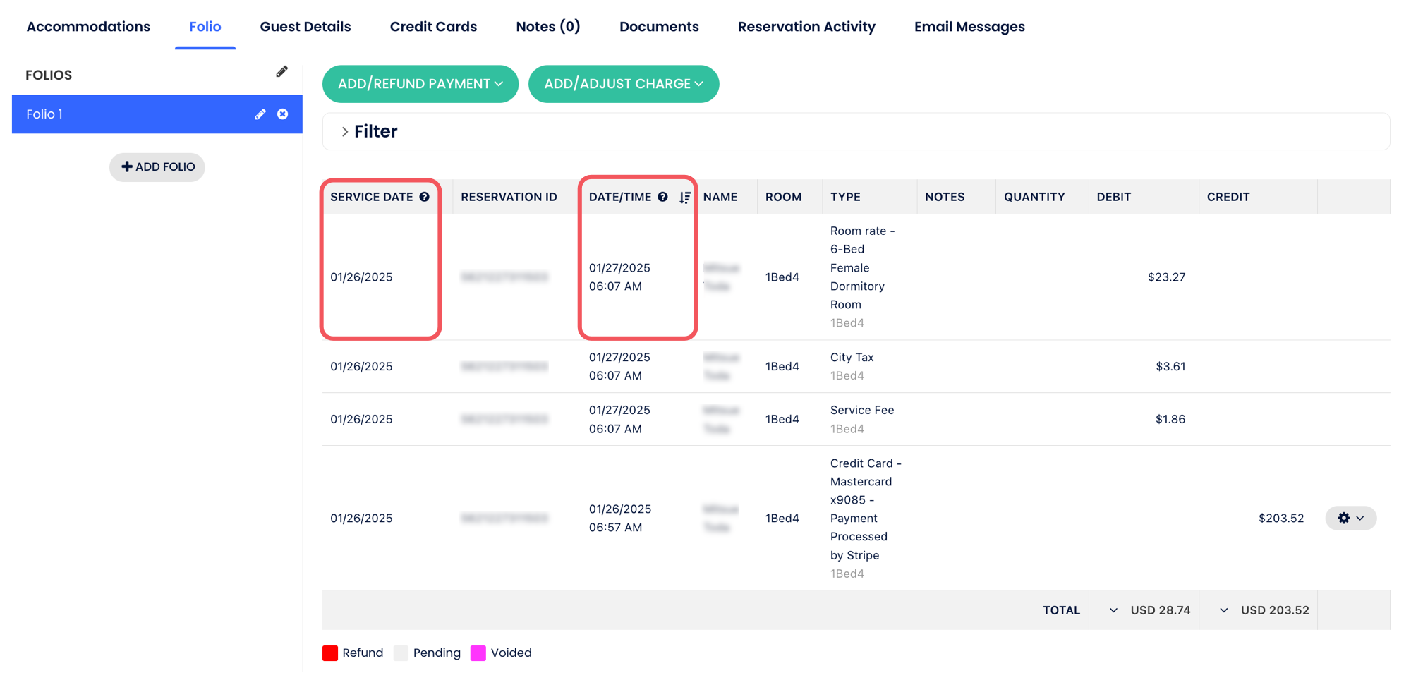 Cloudbeds PMSdeki Rezervasyon Folyosu, misafirlerinin rezervasyonlarına ait finansal detayları saklar; oda fiyatları, beklemede veya işlendi durumundaki işlemler ve daha önce eklenmiş ek öğeler hakkında bilgiler içerir. Ayrıca misafirlerin finansal bilgilerini yönetmek, ödemeleri eklemek, ücretleri ayarlamak veya iadeleri uygulamak için çeşitli seçenekler sunar.