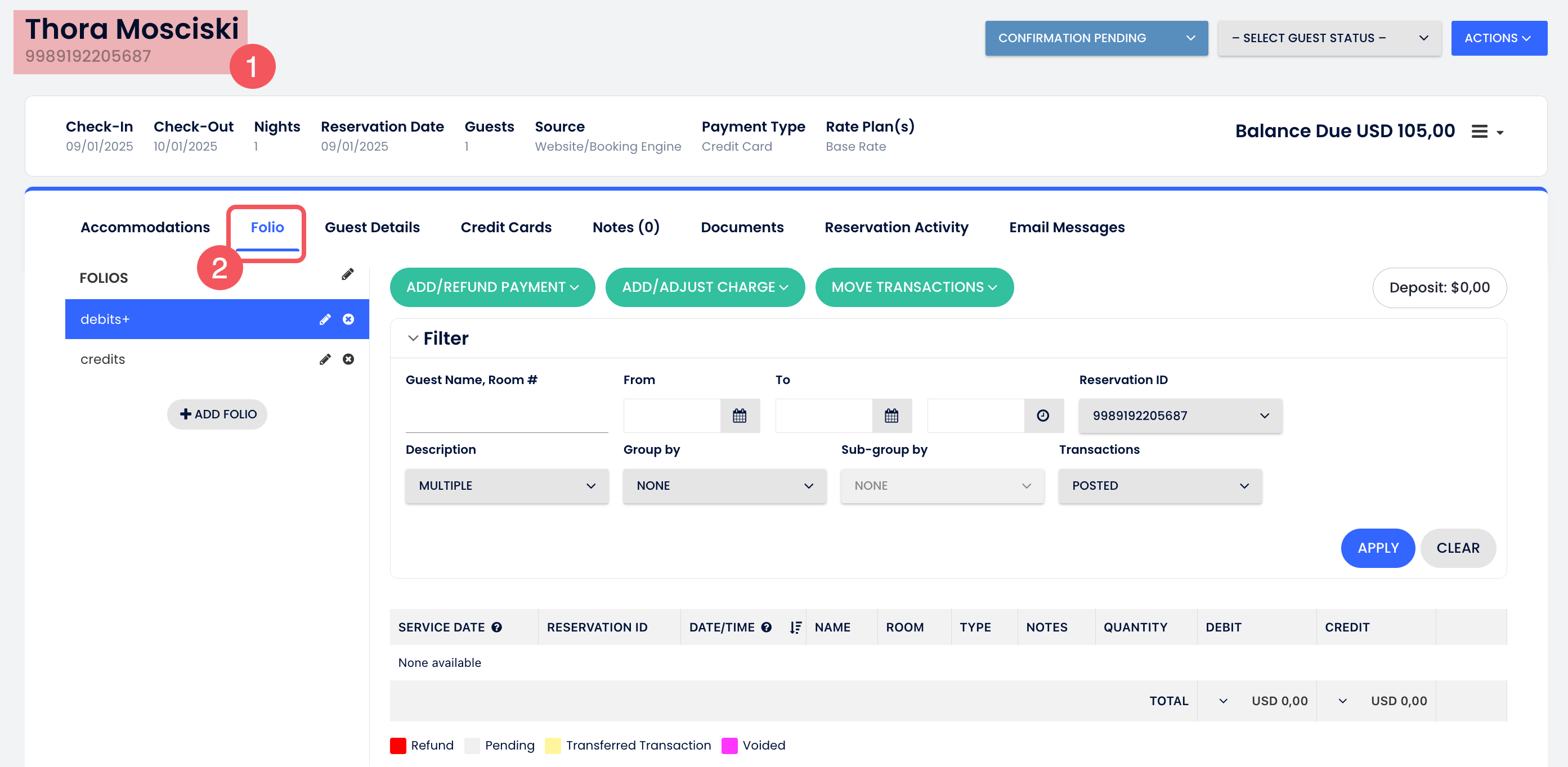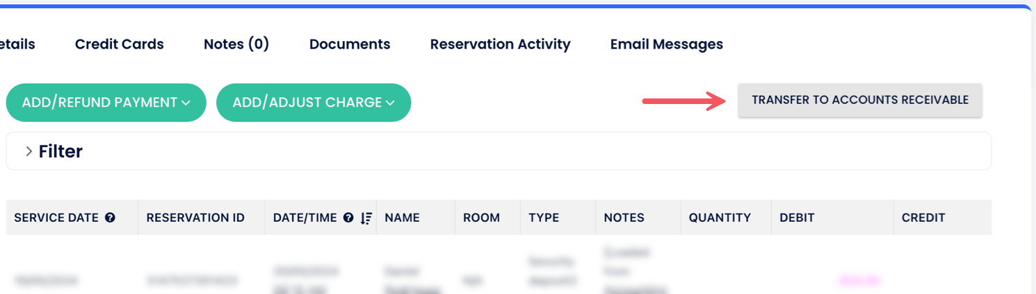 Eğer Alacak Hesapları (AR) özelliği etkinse, bir folyoda bakiye kaldığında (örn. misafir çıkış yaptıktan sonra) Alacak Hesaplarına Transfer Et butonunu göreceksin. Daha fazla bilgi için şu sayfaya bakabilirsin: Alacak hesaplarıyla nasıl çalışılır.