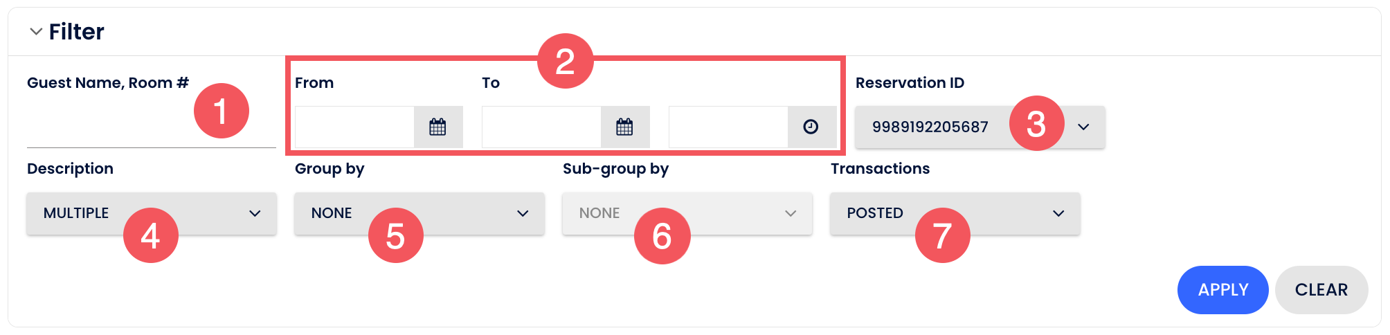 - Misafir adı, oda numarası: İlgili misafir adını veya oda numarasını ekle. Bu filtre, rezervasyonda birden fazla misafir olduğunda özellikle faydalıdır.