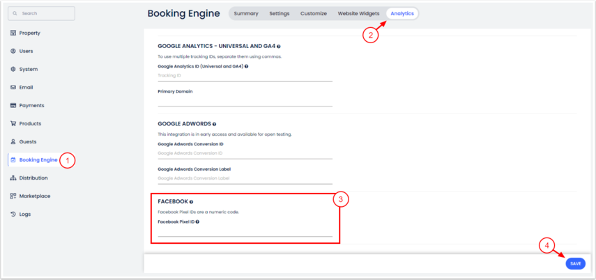 Adım 2 - Facebook Pixels takip ID'ni Cloudbeds hesabına ekle