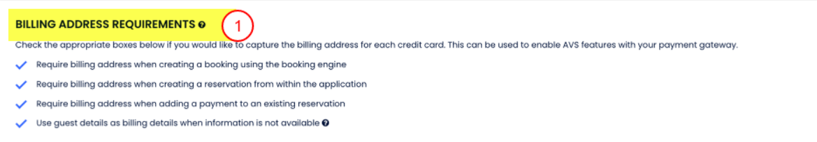 Eğer bu alanı ağ geçidinde zorunlu kılacaksan, Cloudbeds PMS'deki tüm seçenekler için fatura adresini zorunlu olarak ayarla. Bunu yapmamak ödeme ağ geçidi bağlantını bozabilir.