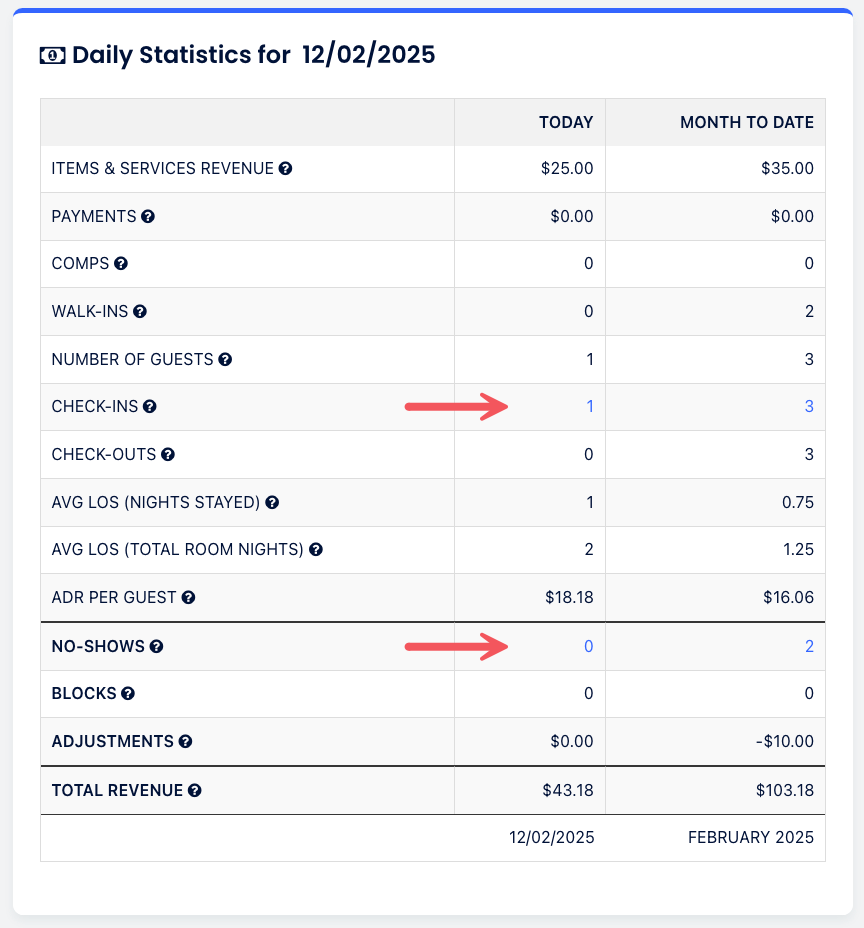 • Walk-In Rezervasyonlar: Kaynağı Walk-In olan oluşturulan toplam rezervasyon sayısı. Onaylanmış, onay bekleyen, konaklayan ve çıkış yapmış rezervasyon durumlarını içerir (gelmeyenler ve iptal edilenler hariç).