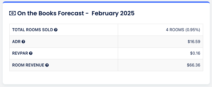 Bu bölüm, mevcut ay için Toplam Satılan Oda, ADR, REVPAR ve Oda Geliri tahminlerini gösterir.