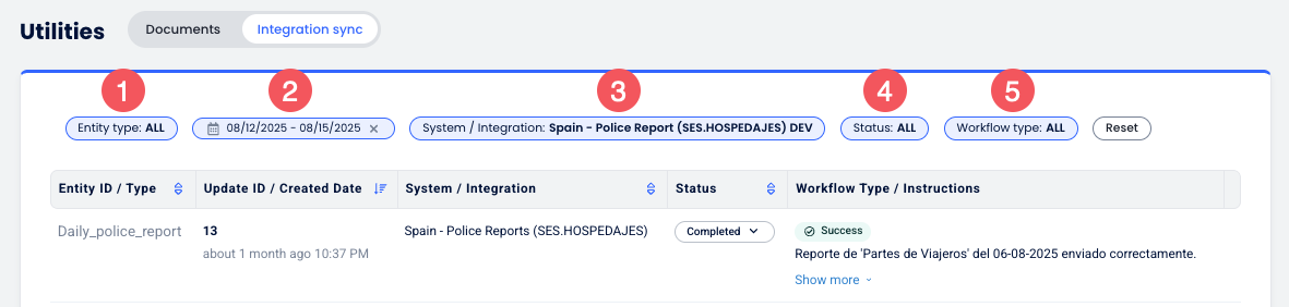 3. Sistem / Entegrasyon — belirli uygulamayı seç (örneğin, İspanya – Polis Raporu SES.HOSPEDAJES).