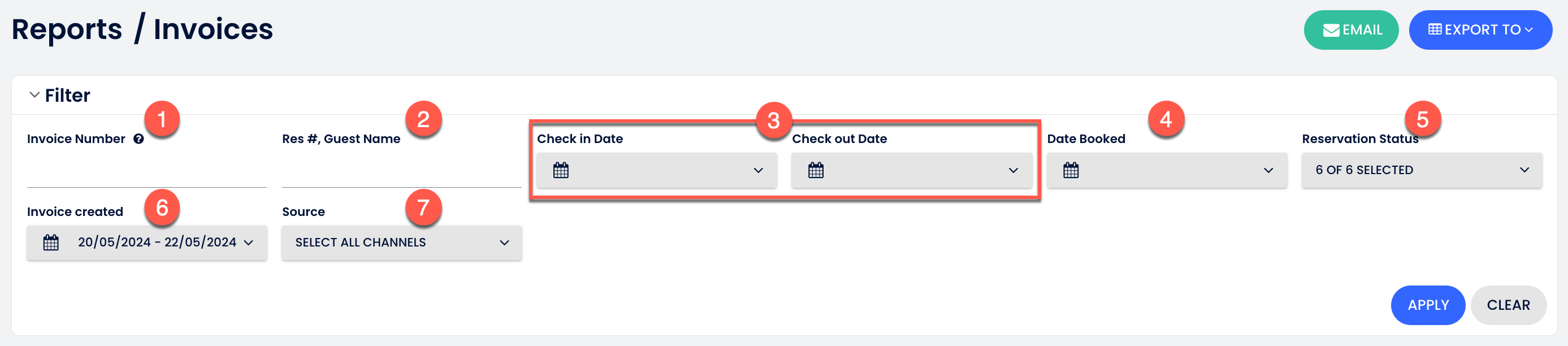 Cloudbeds, tüm faturalarınızı bir araya getiren bir rapor oluşturdu. Bu aracı finansal kontrol, iç ve dış denetim ile performans analizleri için kullanabilirsin. Burada şunları yapabilirsin: