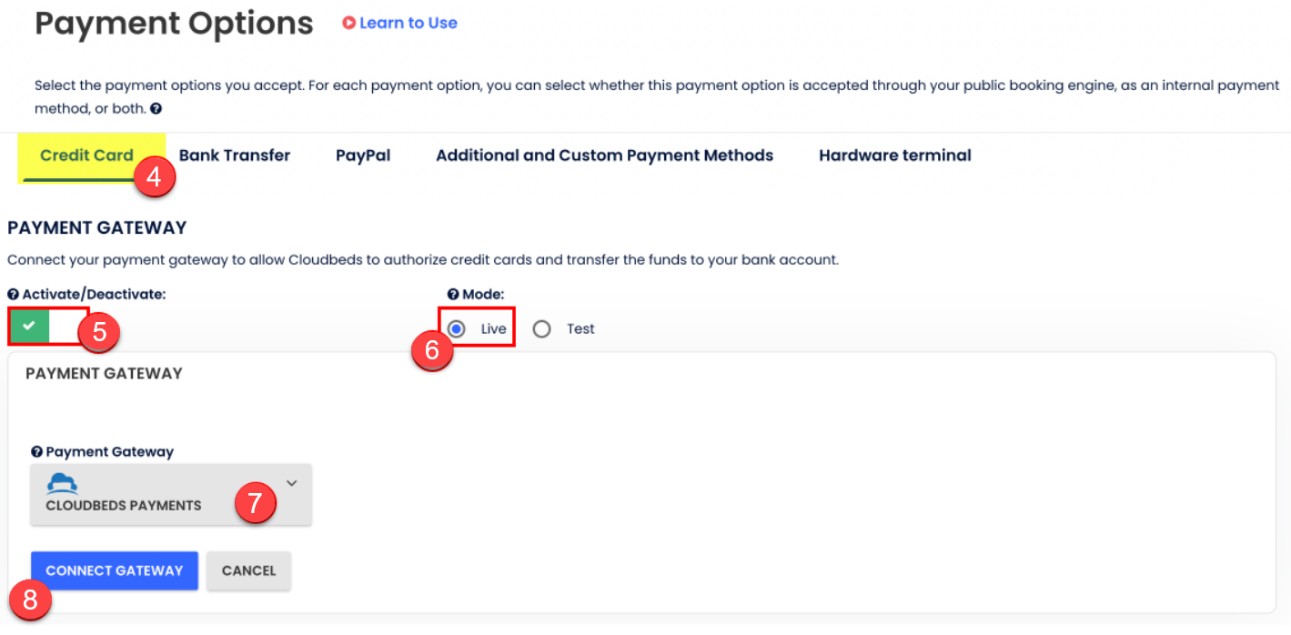 Adım 3: Cloudbeds Payments hesabını kur