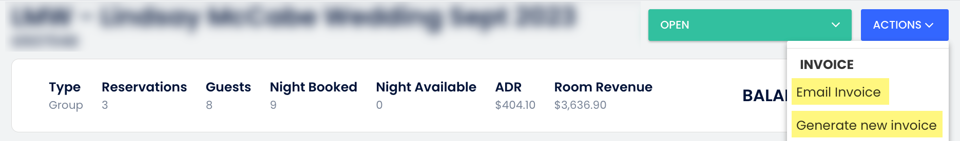 Grup Profili sayfasında, İşlemlere tıkla ve Yeni fatura oluştur veya Faturayı E-posta ile Gönder seçeneklerinden birini seç.