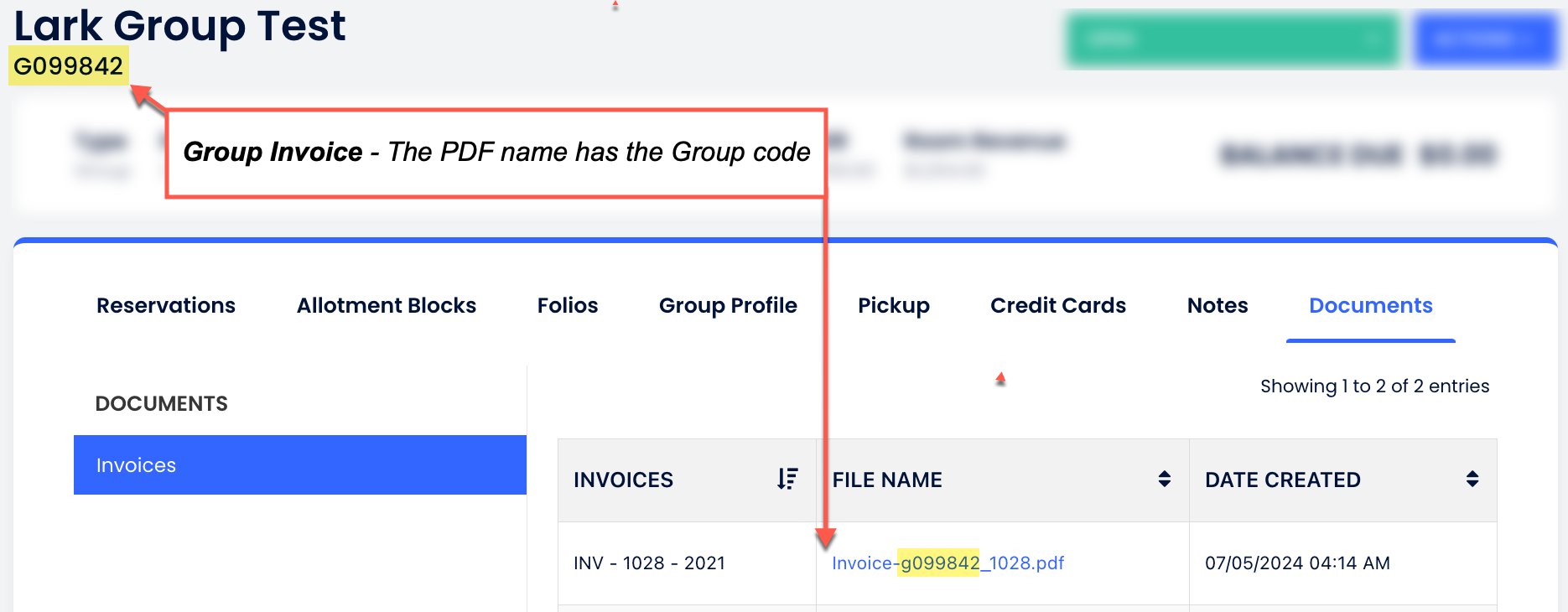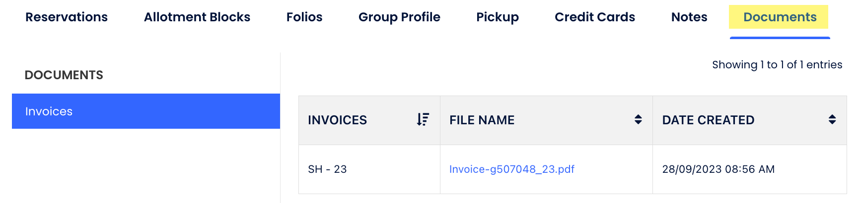 Belirli bir grup içindeki tüm oluşturulan faturaların saklandığı Grup Profilinin Belgeler sekmesine yönlendirileceksin.
