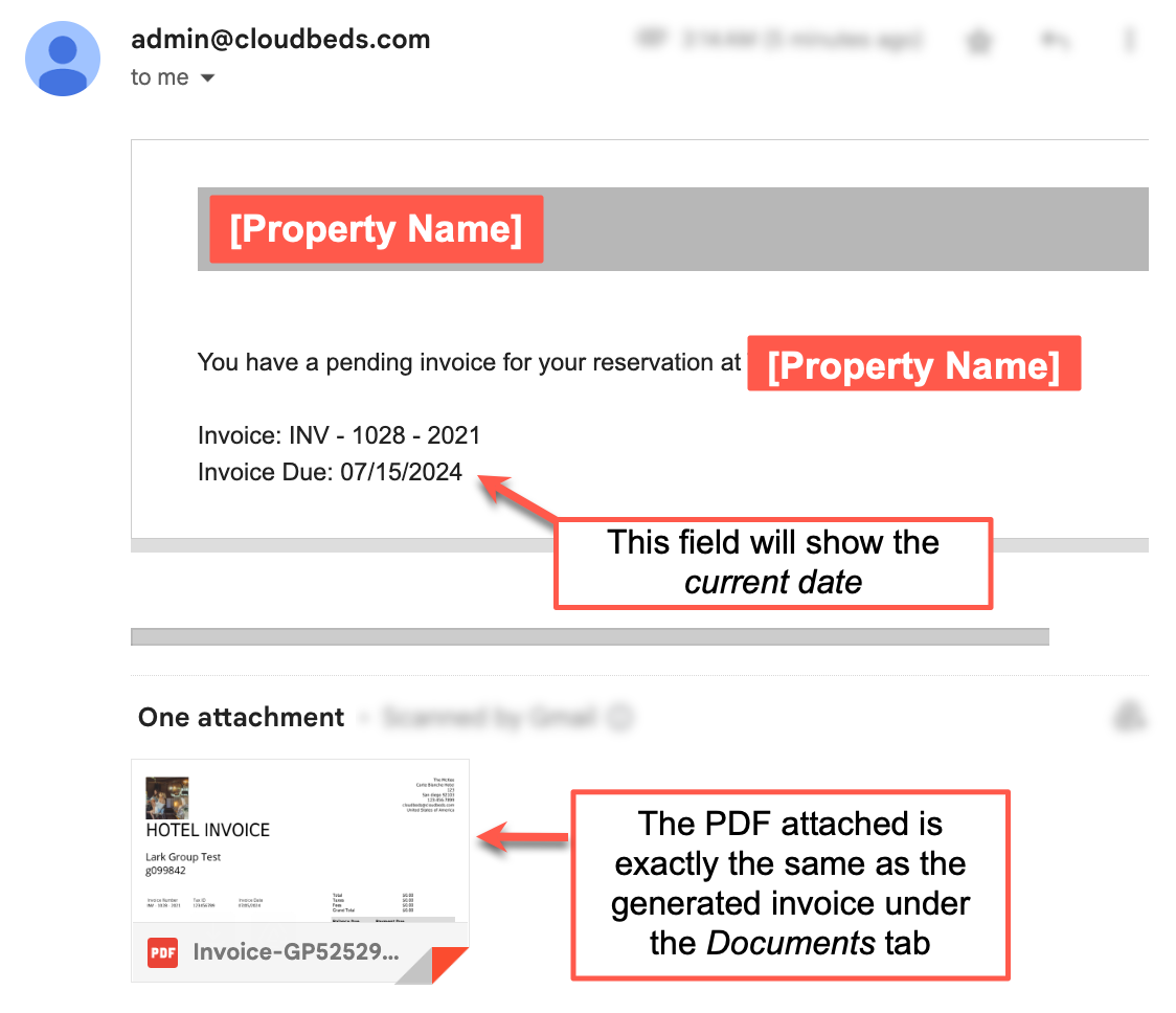 E-posta gönderilecek ve fatura Otomatik Olarak Grup Profilinin Belgeler sekmesinde saklanacaktır. E-posta şu şekilde görünür: