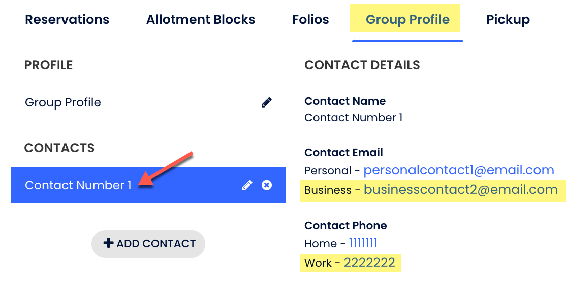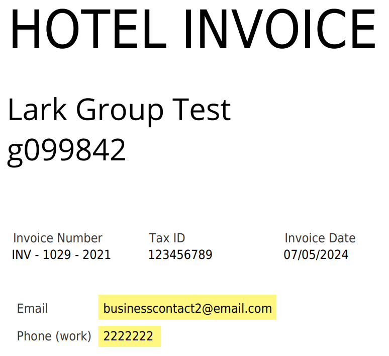 - Grup Profilinde birden fazla iletişim varsa, fatura ilk iletişimin iş e-posta adresini gösterir. Eğer iş e-posta adresi sadece ikinci iletişimde varsa, sistem ikinci iletişimin iş ve telefon bilgilerini alır.