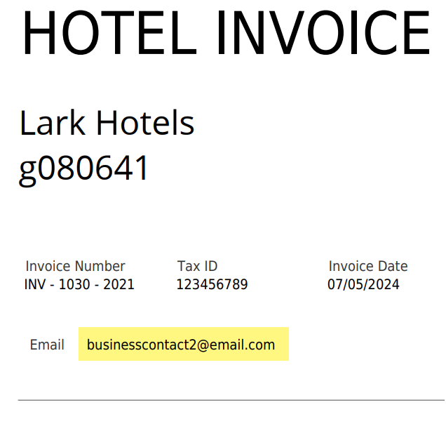 Fatura, her zaman İletişim’in iş e-posta adresini ve iş telefonunu (varsa) içerir ve asla kişisel e-posta adresi veya ev telefonu göstermez.