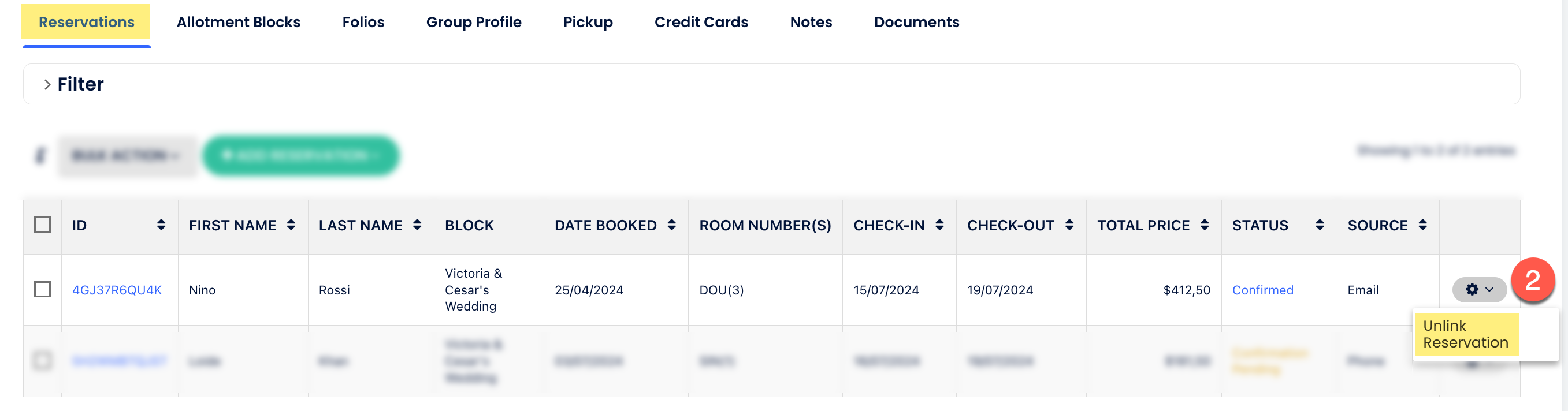 - Rezervasyonun Grup Profilinden bağlantısını kes.