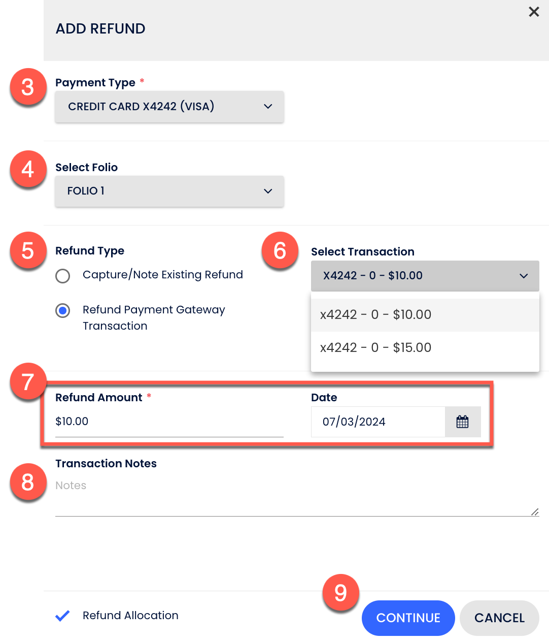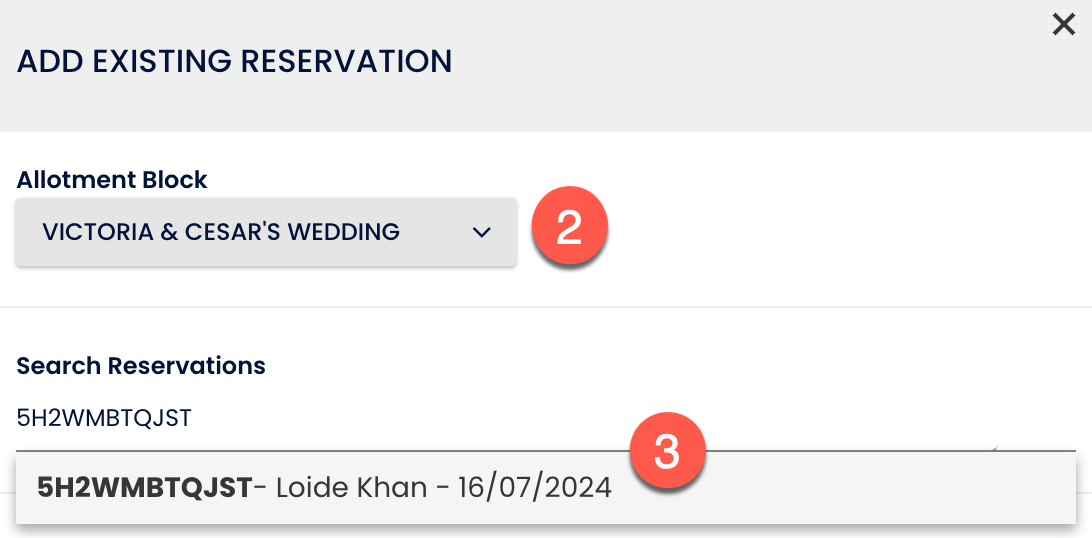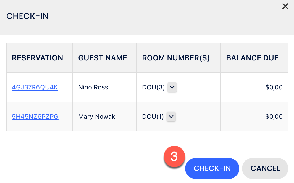 - Rezervasyon numarasını veya misafir adını yaz ve açılır listeden rezervasyonu seç.