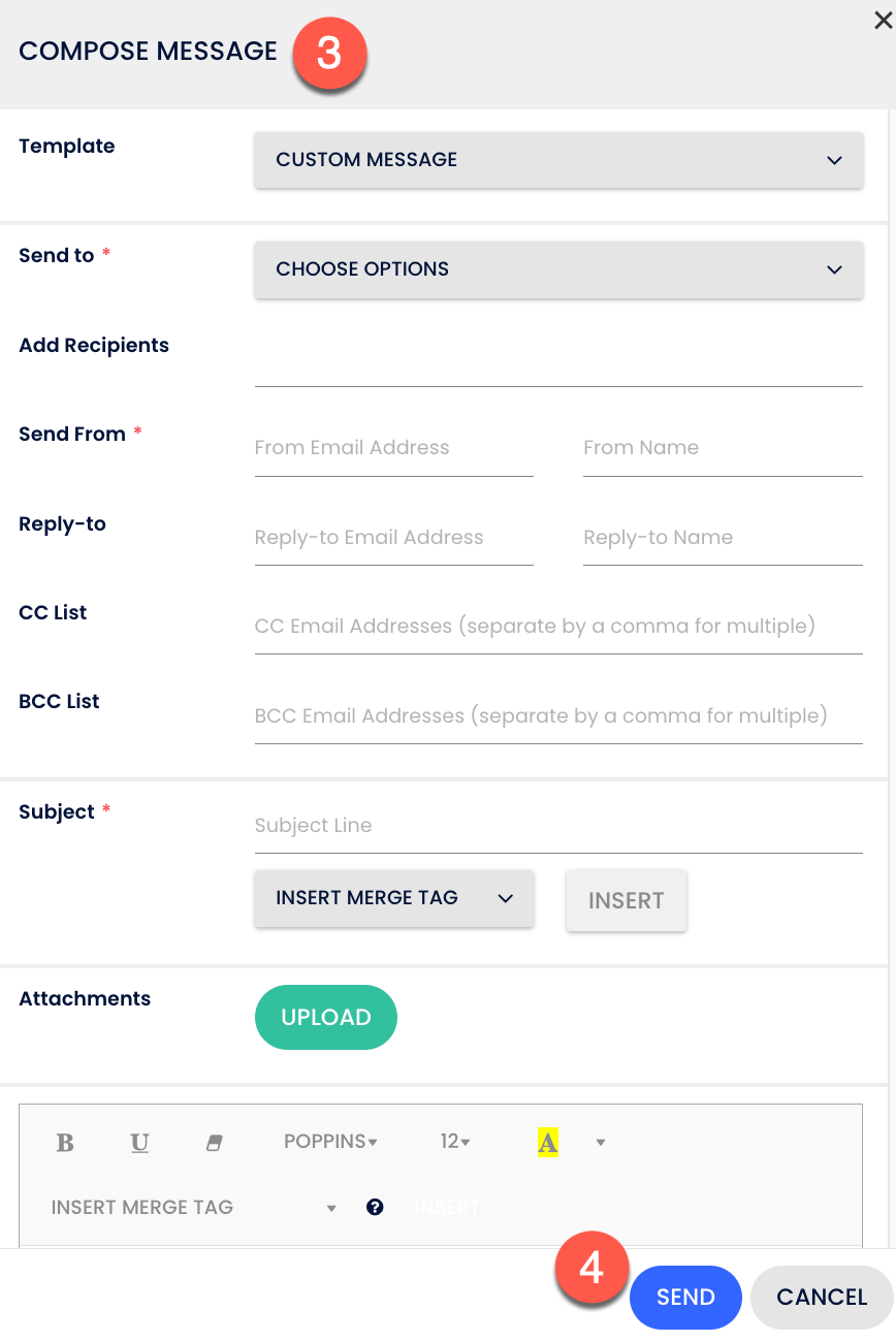 Kullanıcılar, Grup modülü için e-posta zamanlama özelliği şu anda kullanılamadığı için tüm mesajları manuel olarak göndermelidir.