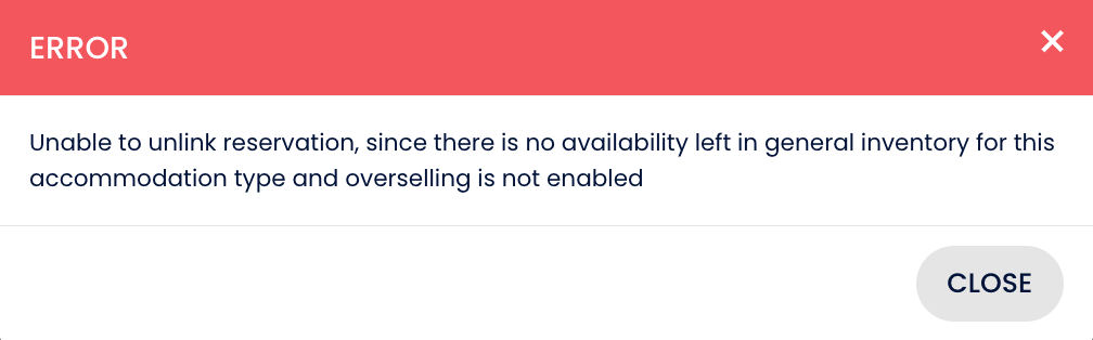 - Blok kontenjan türüyle oluşturulmuş bir rezervasyonun bağlantısını keserken, Kalan Envanterdeki müsaitliğe dikkat et. Rezervasyonun bağlantısı kesildiğinde, kontenjan bloğu grup için hâlâ tutulmaya devam eder ve sistem bu rezervasyonu karşılamak için envanterindeki müsaitliği kullanır.