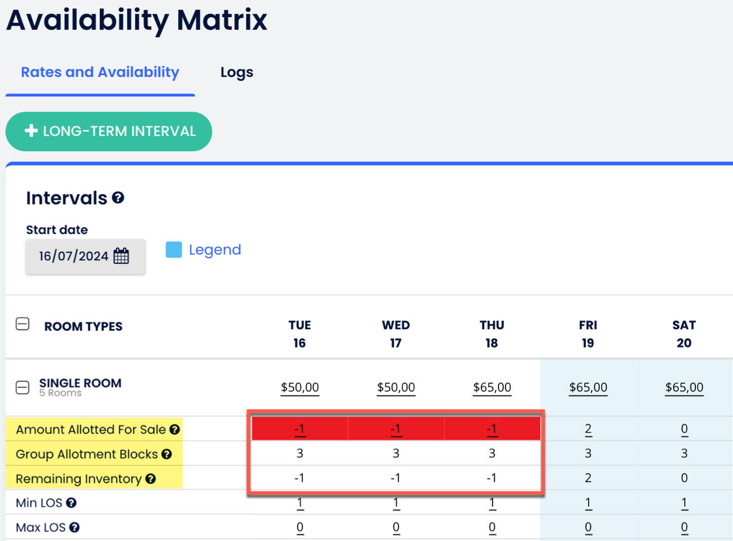 Kalan envanterinizde sadece 2 oda olduğu için ve bağlantısı kesilen rezervasyon 3 oda kullandığı için müsaitliğiniz şimdi -1 oldu.