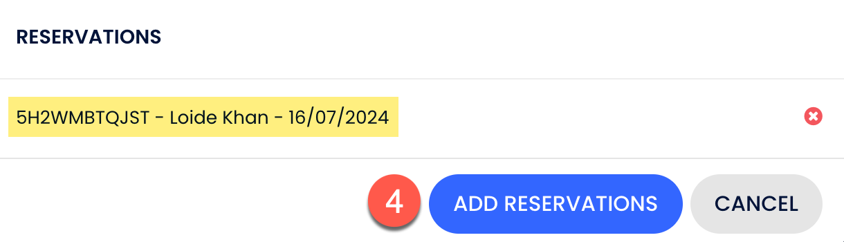 - Rezervasyon listeye eklenecektir. İhtiyaç duyduğun kadar rezervasyon ekleyebilirsin. İşin bittiğinde, Rezervasyonları Ekle butonuna tıkla.