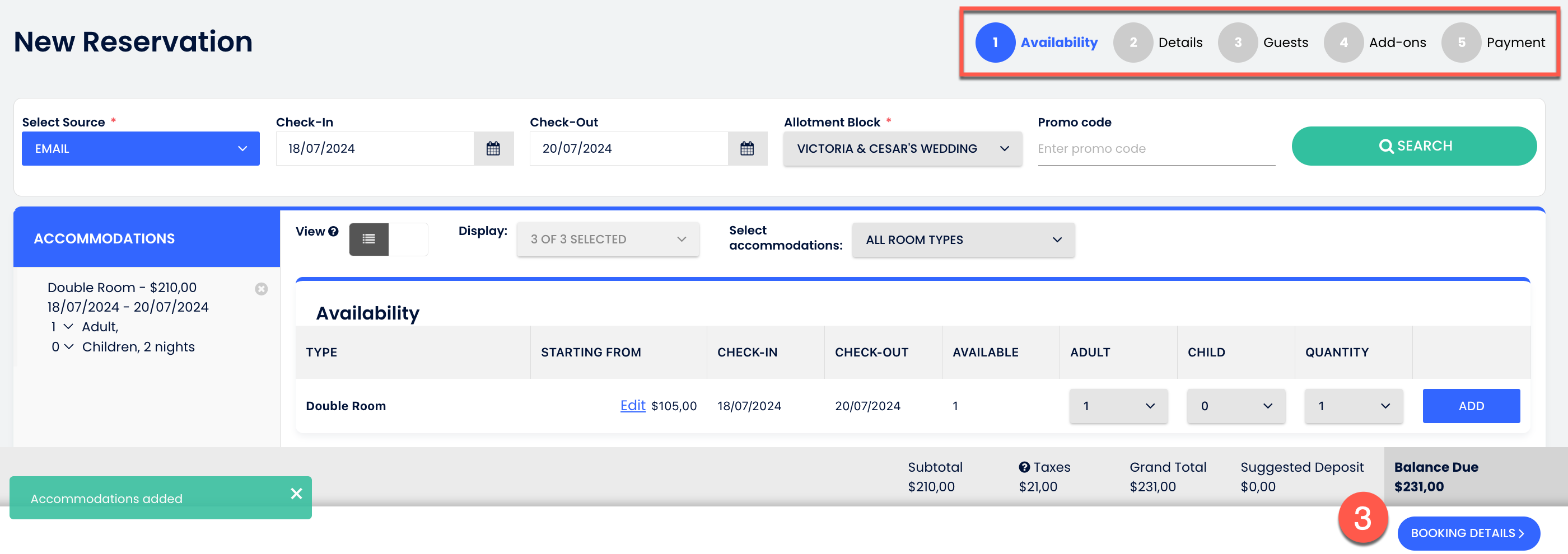 - Rezervasyonu oluşturmak için normal süreci takip ederek devam et.