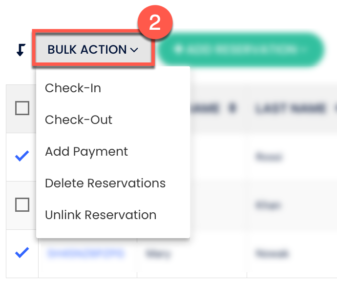 - İstediğin grup profilinin Rezervasyonlar sekmesinden, toplu işlem yapmak istediğin rezervasyonları seç.