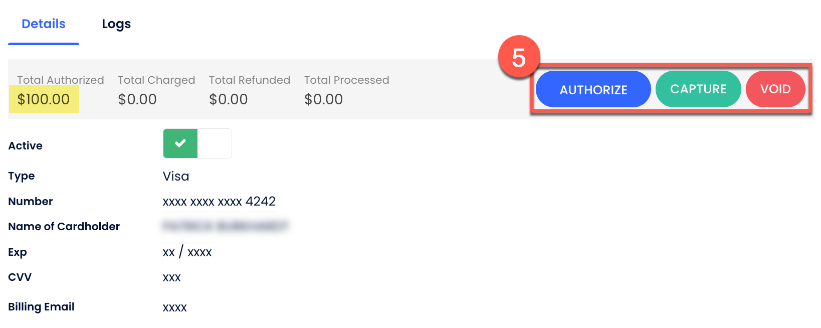 Eğer Ödeme İşleme etkinse, kredi kartını ekleyebilir ve Kredi Kartları sekmesi altında yetkilendirme, tahsilat veya iade işlemlerini gerçekleştirebilirsin. İşlemler daha sonra Grup Folyosunda görüntülenecektir.