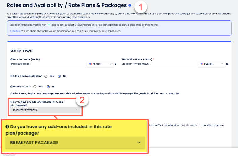 Cloudbeds, tesislerin fiyat planları veya eklentiler içinde kahvaltı öğeleri dahil olmak üzere yemek planlarını kolayca takip etmesine olanak tanır. Eğer yemek planların yapılandırılmamışsa, bir tane yapılandırmak için buraya tıkla.