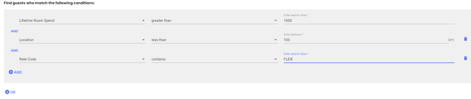 - VE Filtre: 100 £'dan fazla harcama yapan ve tesisine 100 km içinde yaşayan misafirler.