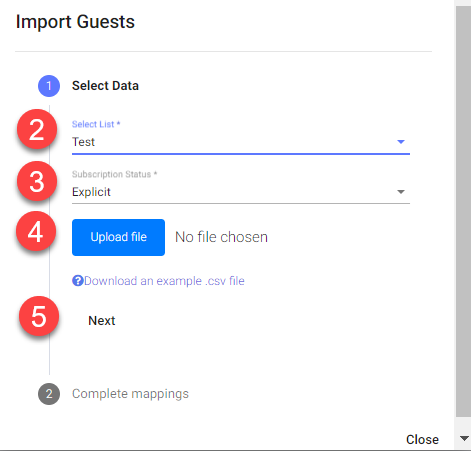 Misafirler & Segmentler > Listeler bölümüne git ve Misafirleri İçe Aktar butonuna tıkla.