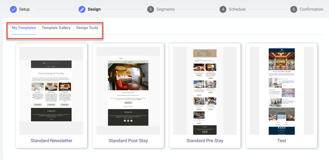 E-postanı oluşturmak için mevcut şablonlar arasından seçim yapabilir, önceden hazırlanmış Şablon Galerisi'ni kullanabilir veya Tasarım Araçları ile sıfırdan oluşturabilirsin: