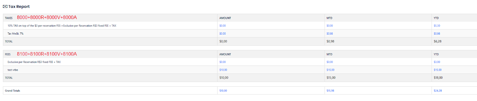 Diğer raporların aksine, Vergi Raporu Muhasebe Kodlarını göstermez.