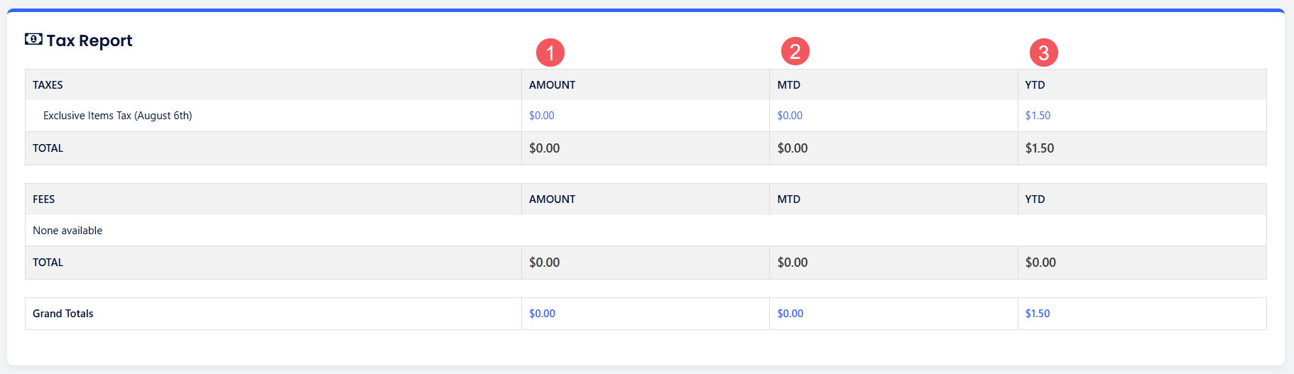 - Toplam vergi/ücret tutarı - Filtrede seçilen tarihe ait.