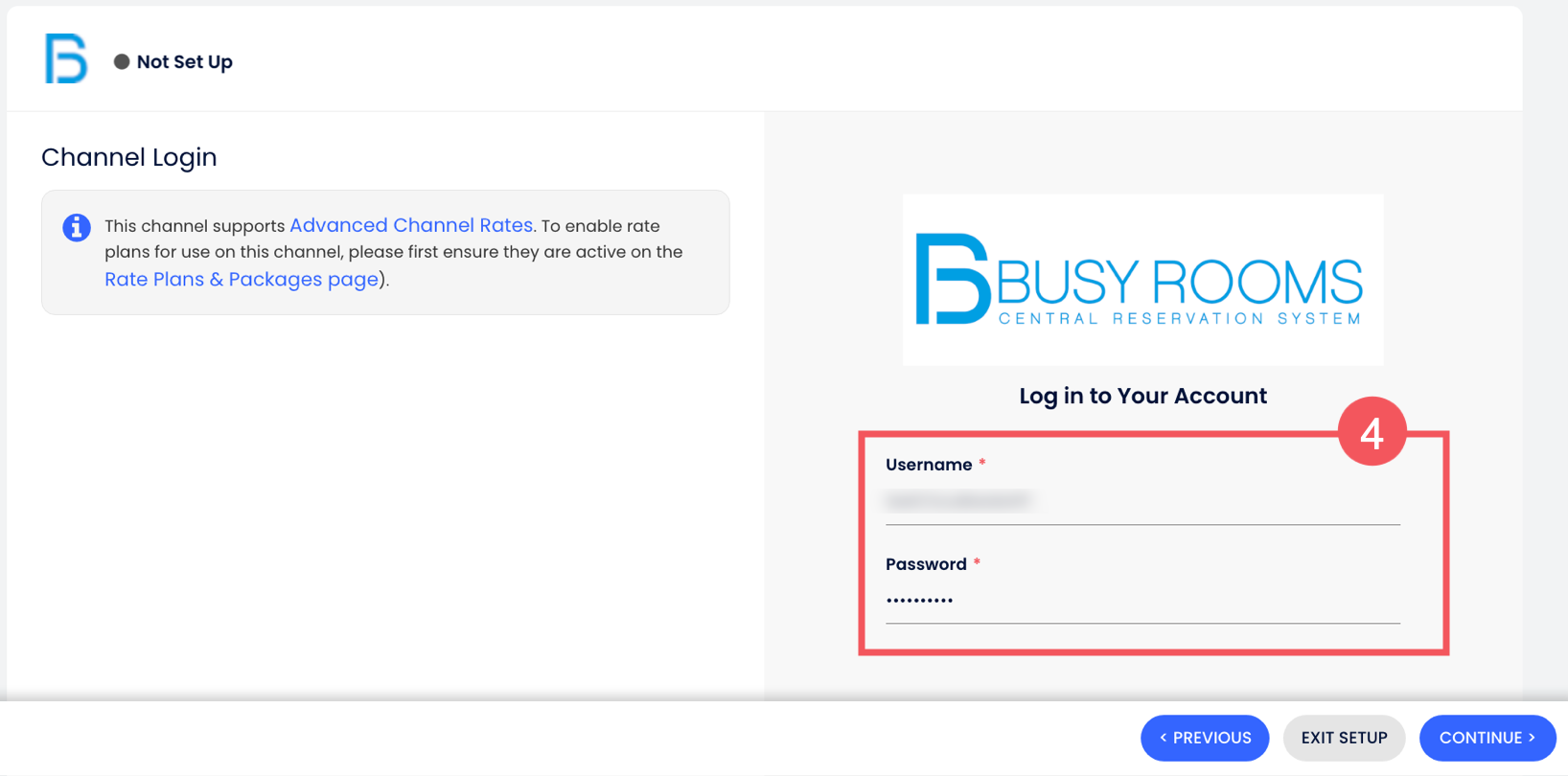 1. Busy Rooms tarafından sağlanan kimlik bilgilerinle giriş yap. Ardından Devam Et butonuna tıkla.