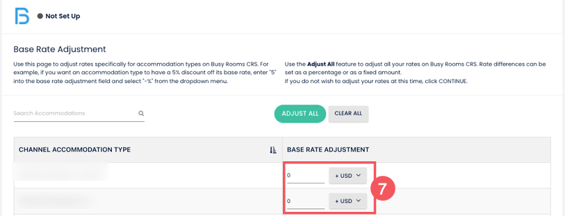 1. Her oda tipi için bir Taban Fiyat Düzeltmesi ekle (gerekirse). Tamamladığında Devam Et butonuna tıkla veya atlamak istersen sıfır bırak.