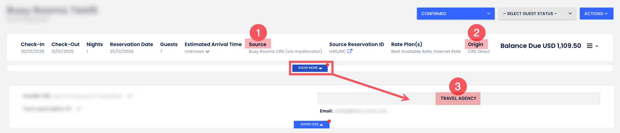 Busy Rooms CRS rezervasyonlarını, Rezervasyon Detayları sayfasını açarak ve aşağıdakilere bakarak tanımlayabilirsin:
