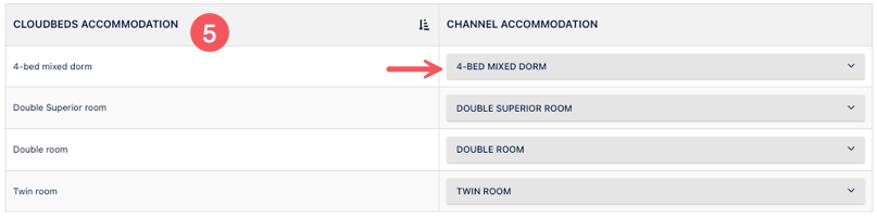 1. Odalarını eşleştir. Busy Rooms konaklamalarının listesi, Kanal Konaklama Birimi sütunundaki açılır listede gösterilir.