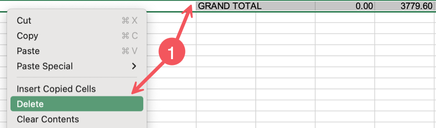 - Sayfanın altındaki 'GENEL TOPLAM'ı sil
