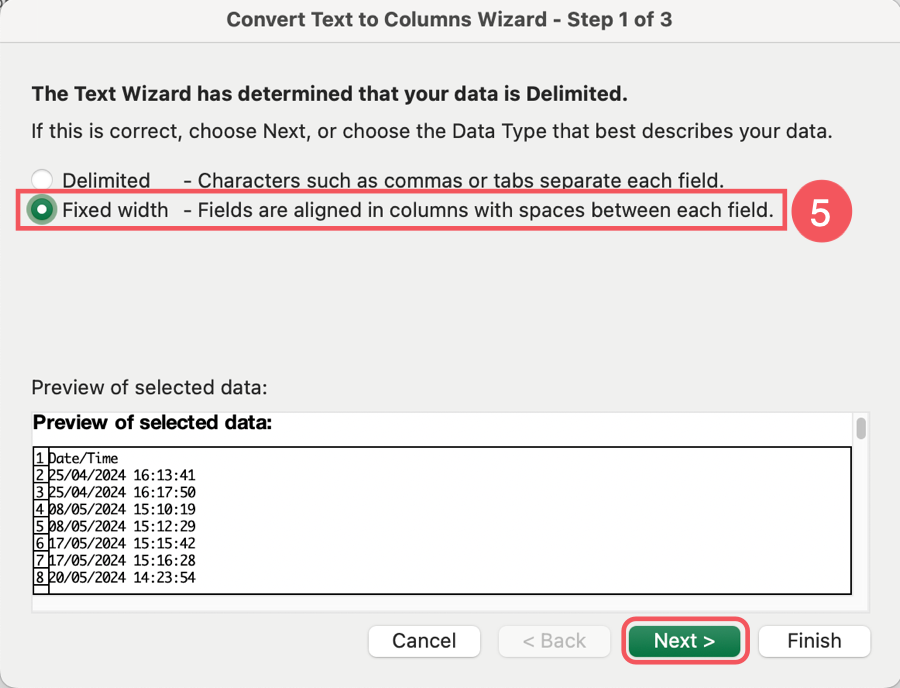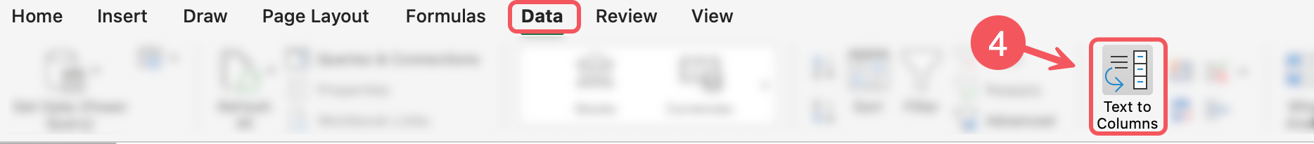 - Excel menüsünde, Veri -> Metni Sütunlara Dönüştür seçeneğine tıkla