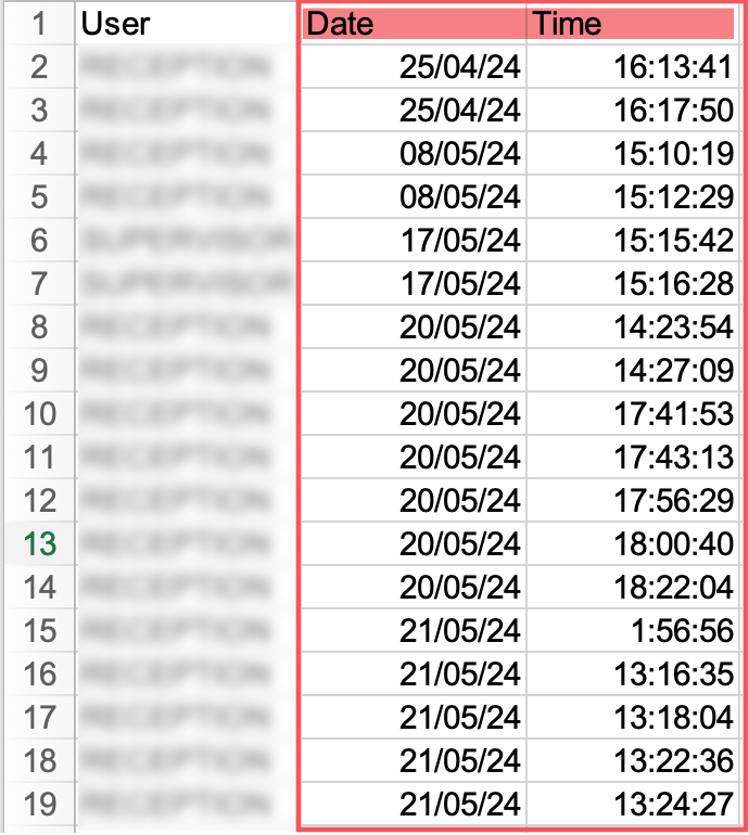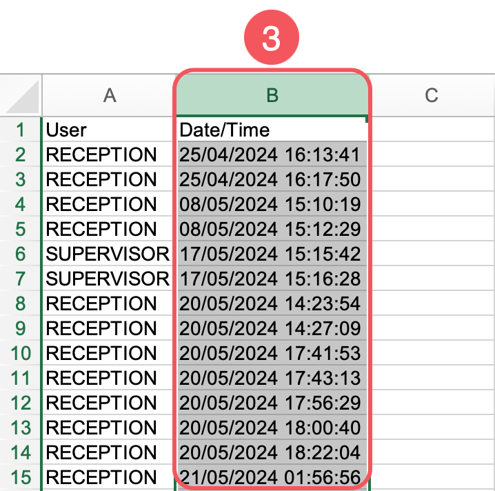 'Tarih/Saat' sütunundaki tüm verileri seç
