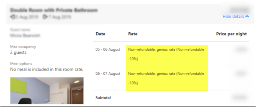 NEDEN: (Booking.com ekibi tarafından sağlanmıştır) "Bu fiyat, Promosyonlar API'si veya Promosyonlar sekmesi kullanılarak oluşturulmadığı için Fiyat Adı gösterilmeyecektir. Ancak, rezervasyonun iadesiz politika ile yapıldığına dair ek bilgi olarak açıklama içinde gönderilecektir."