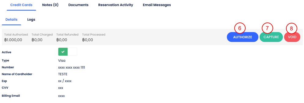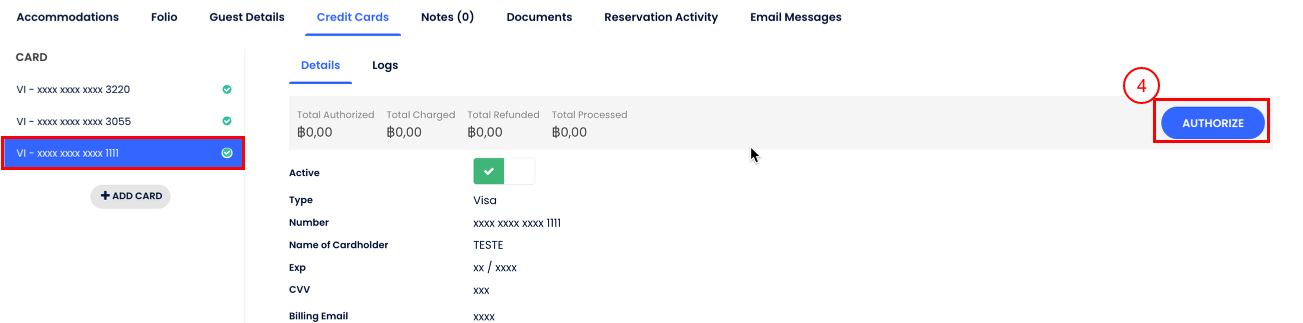 - Ön Yetkilendir: misafirin kartında bir tutar bloke edilir, daha sonra Kredi Kartı sekmesinden tahsil edilebilir