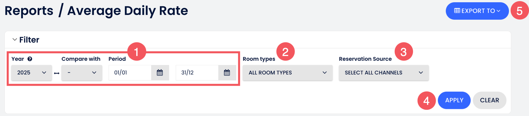 • Eğer önceki yılın (örn. 2023) ADR’si $0 ise, yüzdelik değişim hesaplanmaz ve %0 olarak gösterilir.