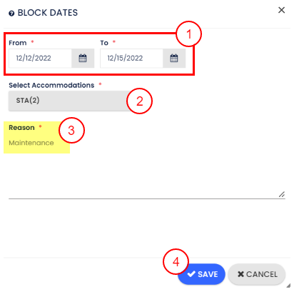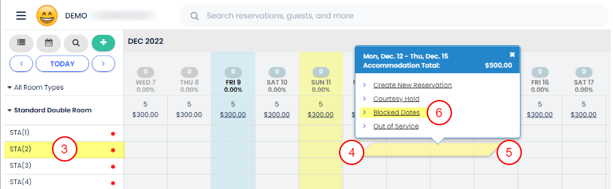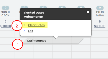 - Bloke etmek istediğin konaklamayı bul ve Konaklama Bloke Edildi satırında kapatmak istediğin tarihleri işaretle